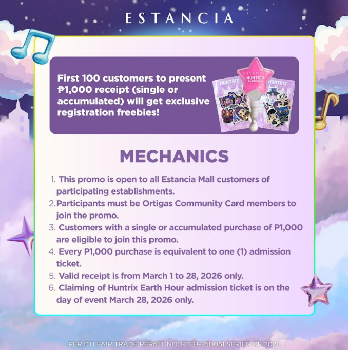 Over at Estancia, the celebration continues with Huntrix Earth Hour inspired by the hit movie K-Pop Demon Hunters. Fans can channel their inner idols and dress up as their favorite character for a chance to win exciting prizes. With the same ₱1,000 single or accumulated receipt, shoppers are in for an immersive experience inspired by the electrifying world of Huntrix.Across both malls, this is more than a fan event. It’s a celebration of music, community, and purpose. For more information, follow GH Mall on Facebook and Instagram, and Estancia Mall on Facebook and Instagram.